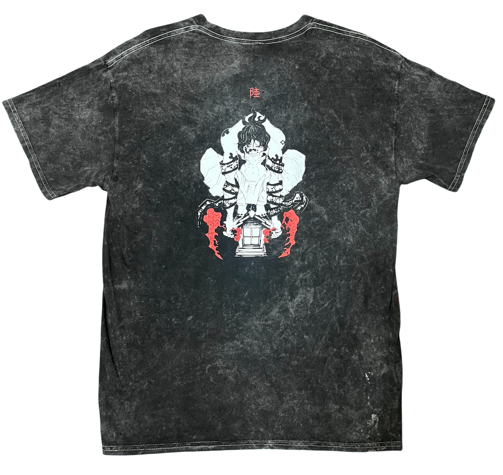 100% Cotton on acid washed black shirt.
