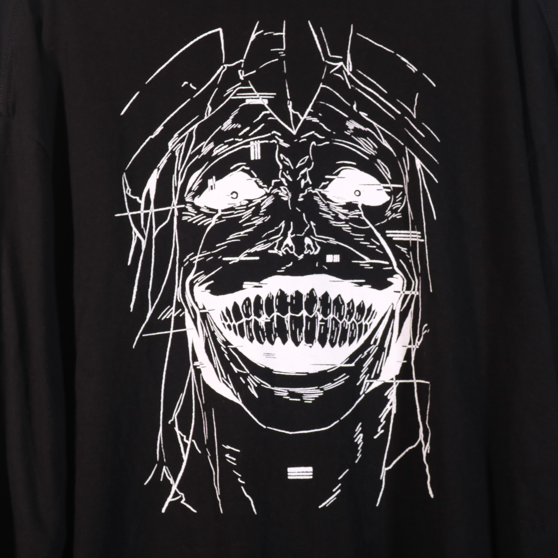 White ink printed on 100% cotton long sleeve shirt.